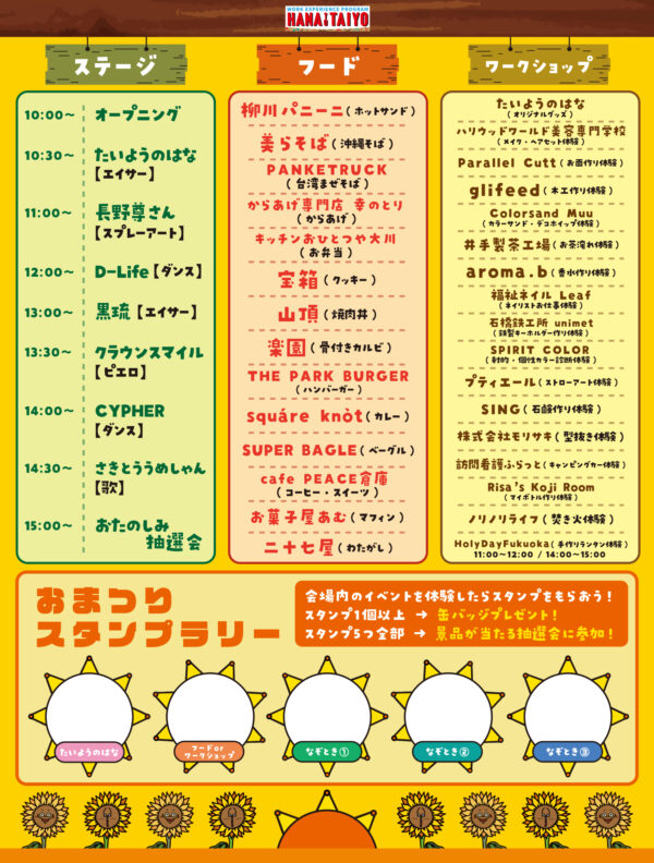 また周年祭期間中の下記日時にてイベントが開催されます。ステージイベントやキッチンカー、ワークショップが店舗前の芝生広場や駐車場に並びます。