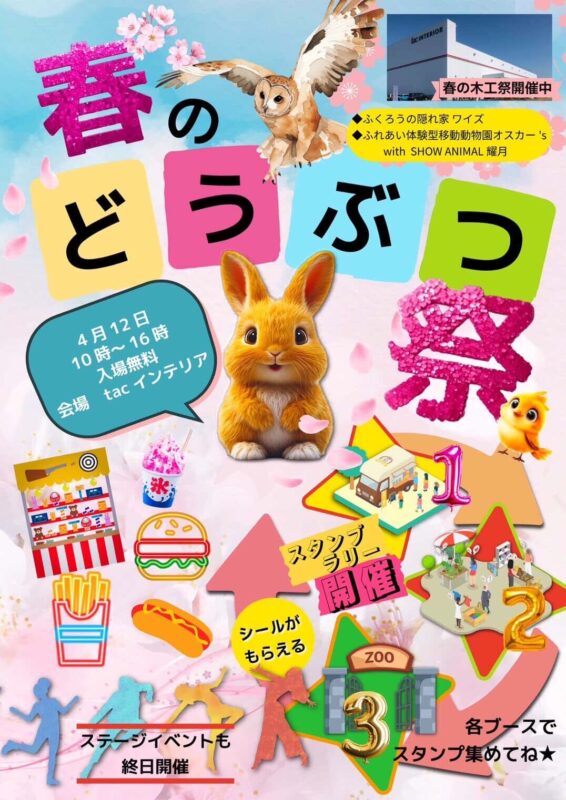 また、スタンプラリーや動物とのふれあいコーナーなど、お子様にもお楽しみいただける企画をご用意しております。
