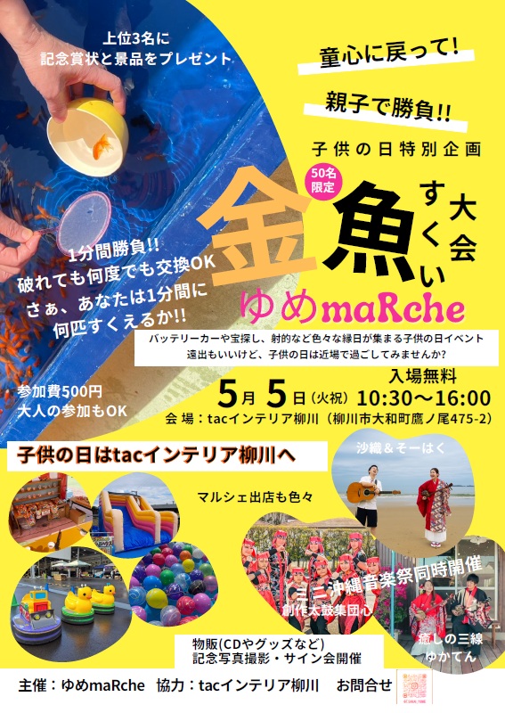 このたび、tac INTERIOR柳川店にて子供の日特別イベント「ゆめmaRche」を開催いたします。